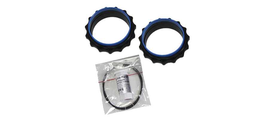 - W zestawie kilka rozmiarów pierścieni wewnętrznych ułatwiających zakładanie na różnej grubości rękawic lub manszet, zapasowe oringi i smar do pierścieni.