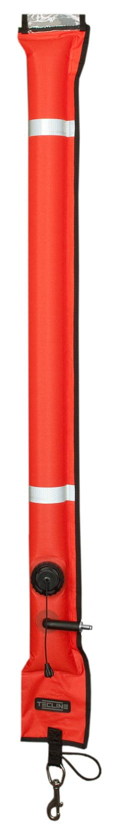 Bojka Tecline 11/117 zamknięta, z zaworem nadmiarowym, metalowym ustnikiem i metalowym karabinkiem to obowiązkowy "towarzysz" wszystkich nurkowań. Małe gabaryty i niewielka waga sprawiają, że jest to idealne uzupełnienie lekkiej konfiguracji wyjazdowej. Zamknięta konstrukcja zapobiega wlaniu się wody do bojki podczas płynięcia. Bojkę możemy napełnić ustnie lub za pomocą węża do inflatora.