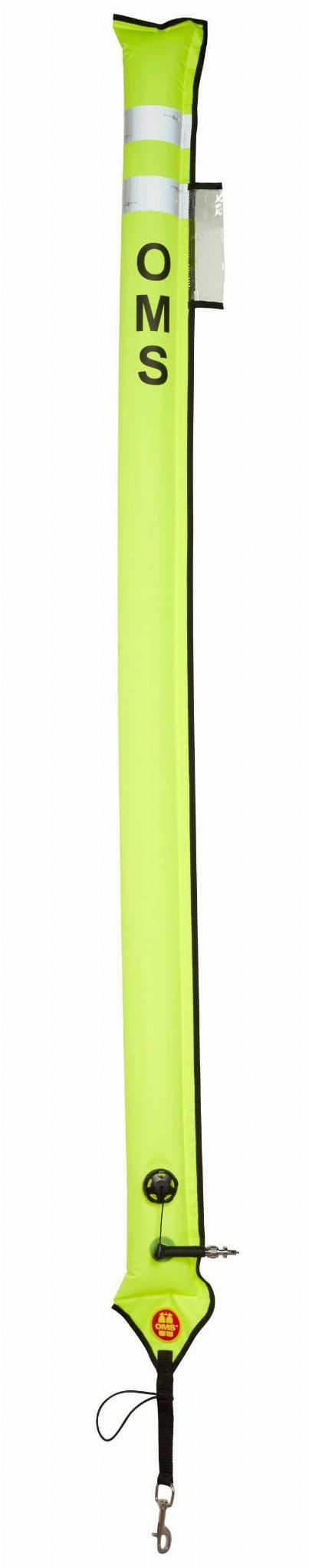 Bojki sygnalizacyjne w kolorze żółtym stosuje się w sytuacjach awaryjnych to obowiązkowy element wyposażenia każdego płetwonurka technicznego. Boję OMS "SLIM Big" 6' (1,8m) można napełnić ustnie przy pomocy zaworu lub przy użyciu węża inflatorowego.