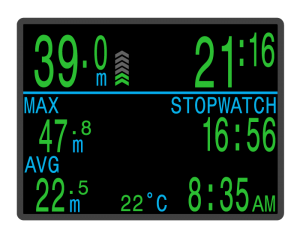Komputer z trzema gazami nitroksowymi z funkcjami dla poważnych entuzjastów nurkowania rekreacyjnego. Zawiera adaptacyjny przystanek bezpieczeństwa i wykres słupkowy NDL