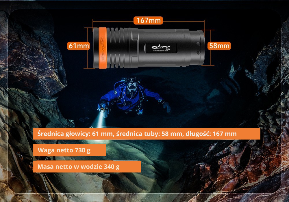 Latarka nurkowa OrcaTorch D920 – 5000 lm