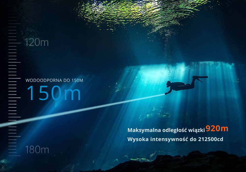 • Maksymalnie 212500cd, przy maksymalnym zasięgu 920 metrów