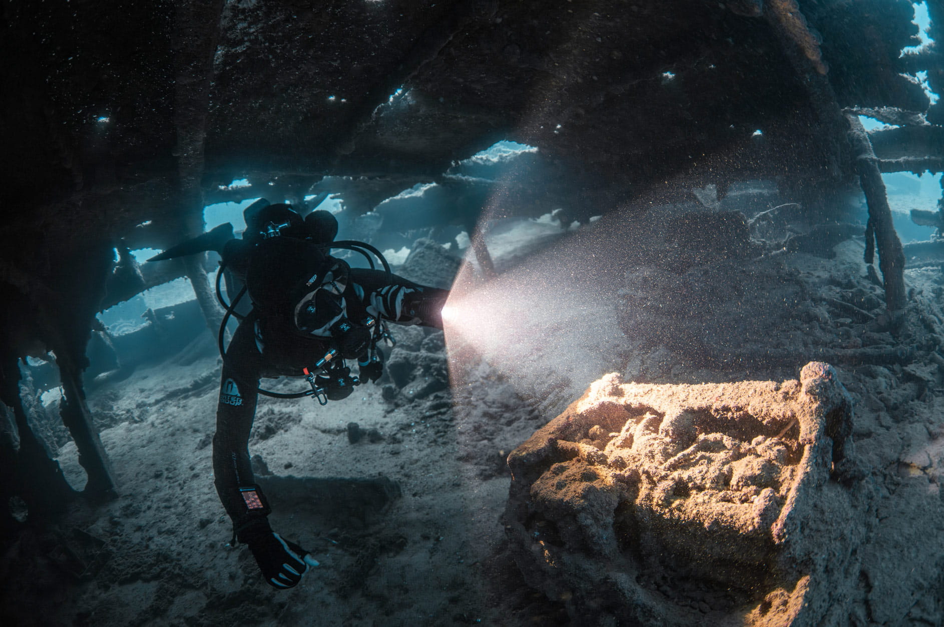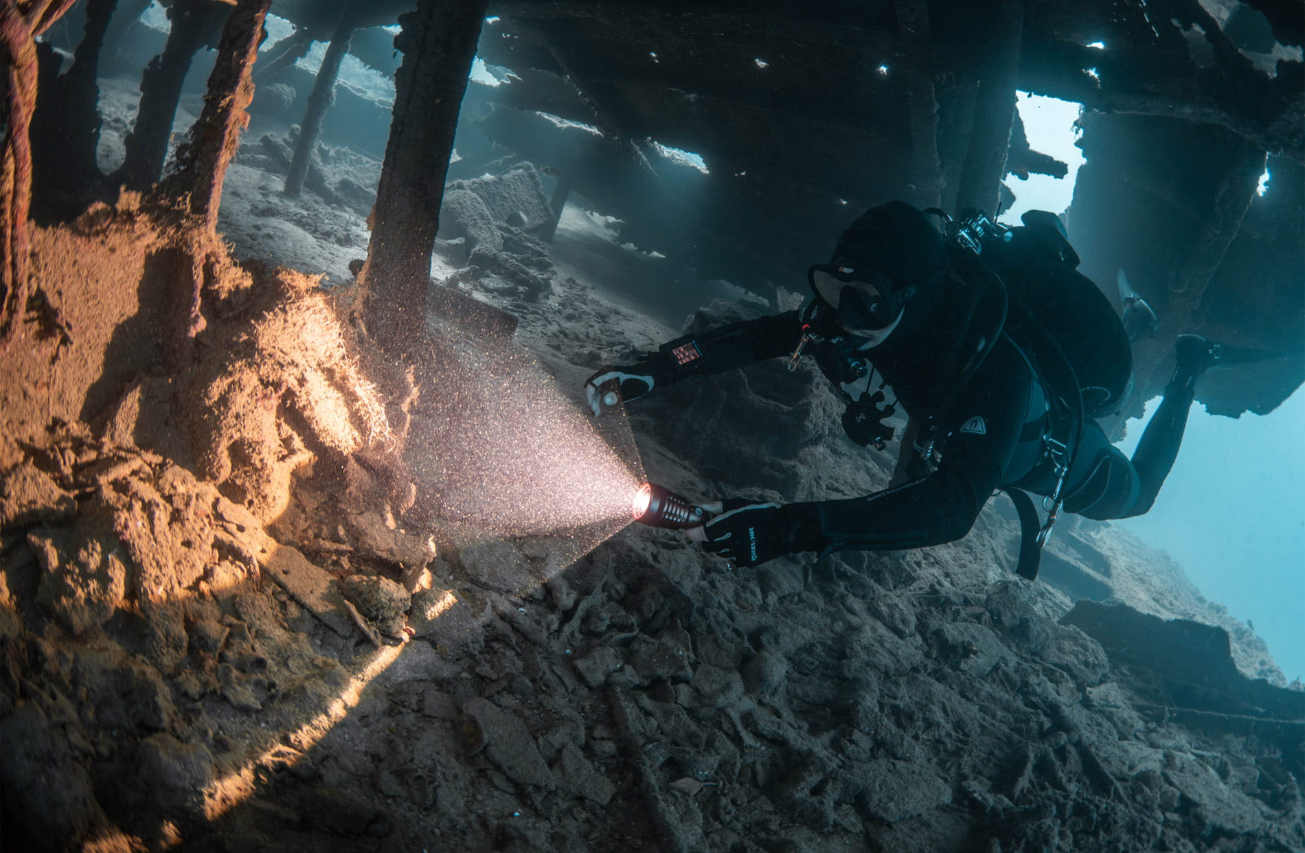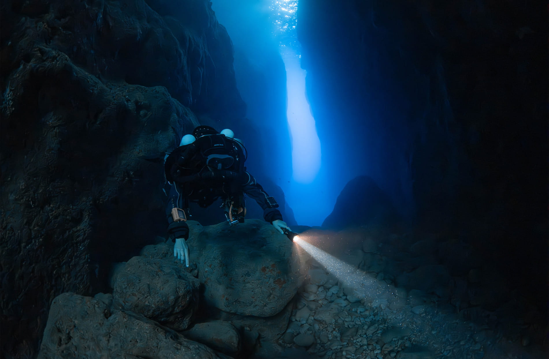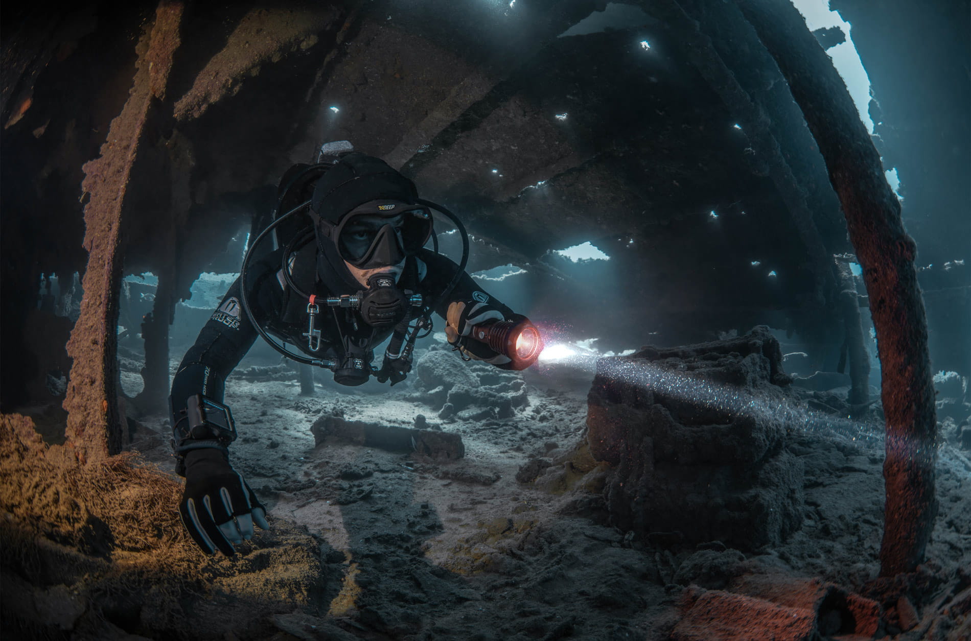 • eksploracja wraków, jaskiń i miejsc o słabej przejrzystości,