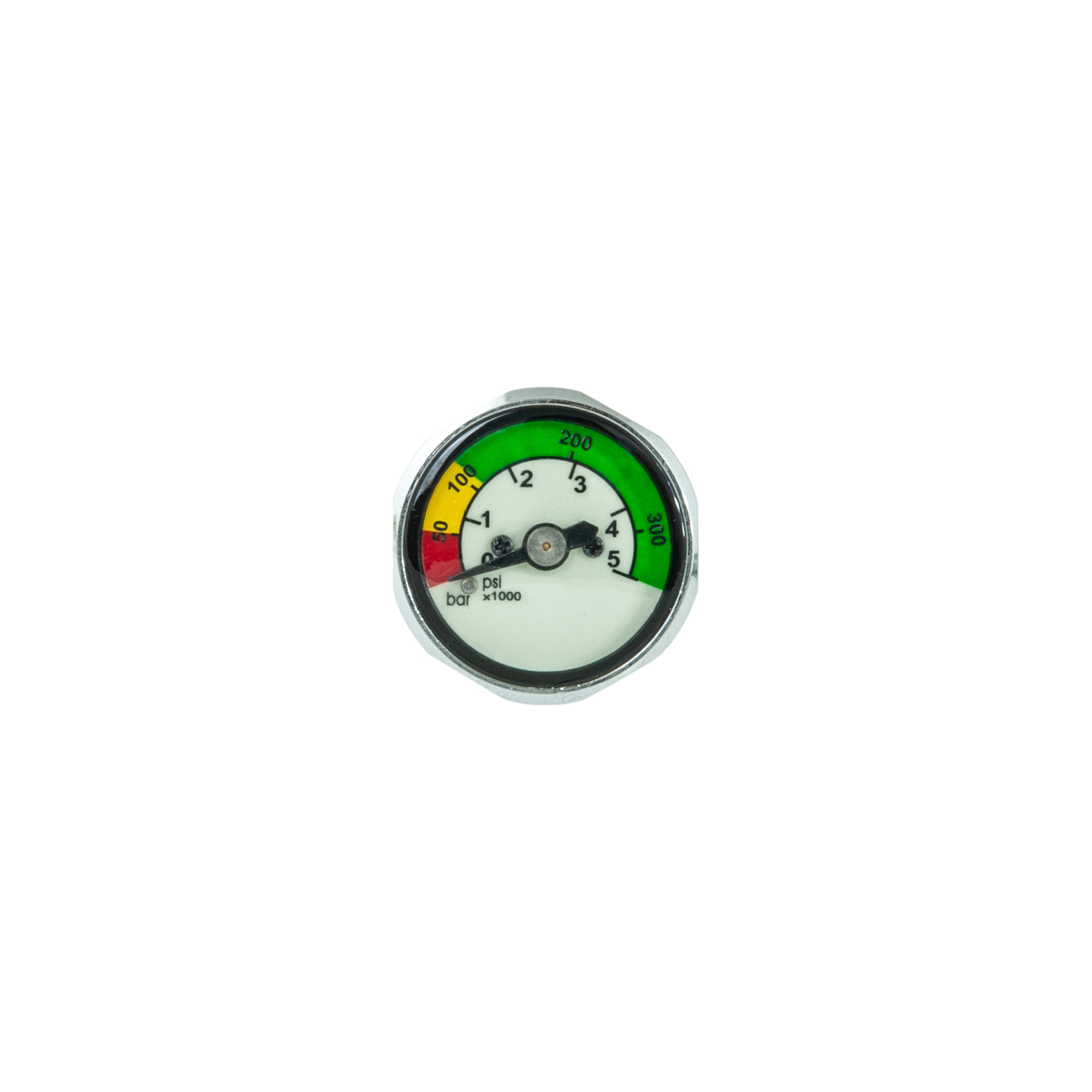Mały manometr kontrolny do butli pony lub argonówki. Wkręcany bezpośrednio do portu HP w pierwszym stopniu automatu. Ten niewielki manometr może służyć jako uzupełnienie dla transmitera w konfiguracji sidemount. Pomimo niewielkich rozmiarów manometr jest doskonale czytelny dzięki kolorowej tarczy.