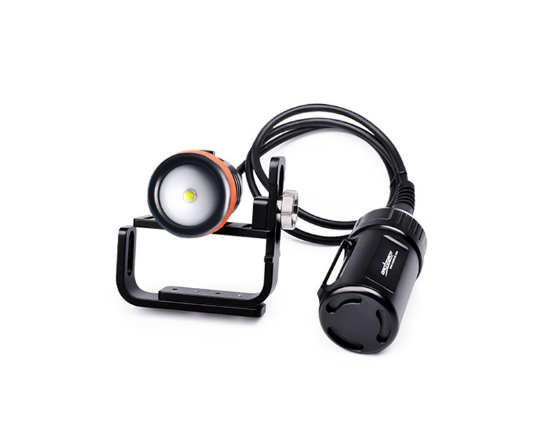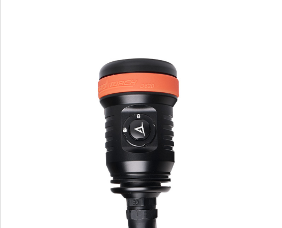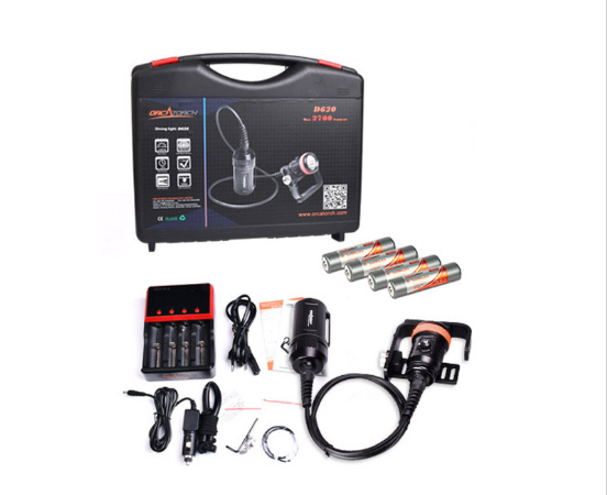 OrcaTorch D620V to specjalistyczna latarka nurkowa z kanistrami, zaprojektowana specjalnie do nurkowań technicznych, między innymi do nurkowania jaskiniowego. Nowo zaprojektowany przełącznik można zablokować po obróceniu o 90°, dzięki czemu zapewnia łatwe i niezawodne użytkowanie, ale także pozwala uniknąć przypadkowego włączenia latarki. Wykorzystuje 4 baterie litowo-jonowe 18650 dostarczając 2.5 godziny mocnego świecenia i 37 godzin świecenia słabego. Obustronnie powlekane szkło hartowane o wysokiej odporności na ciśnienie wody na głębokościach. Obudowa wykonana z wysokiej jakości aluminium lotniczego. Najnowocześniejsze wykończenie anodyzowane, które jest jeszcze grubsze i trwalsze niż zwykłe typu Premium III, dzięki czemu powierzchnia obudowy latarki jest twarda jak diament, chroniąc latarkę przed korozją morską.