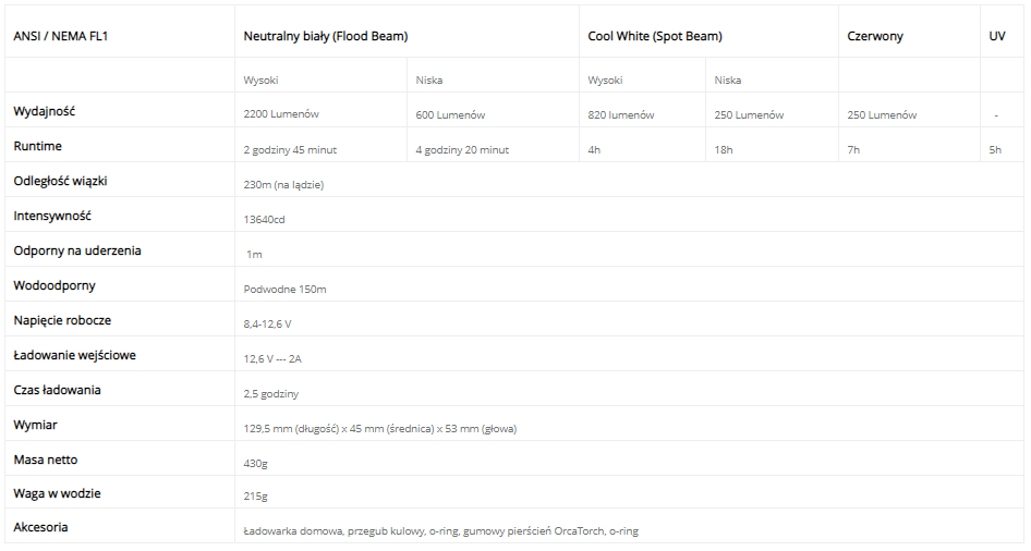 Oświetlenie Orcatorch D900V + UV i światło czerwone