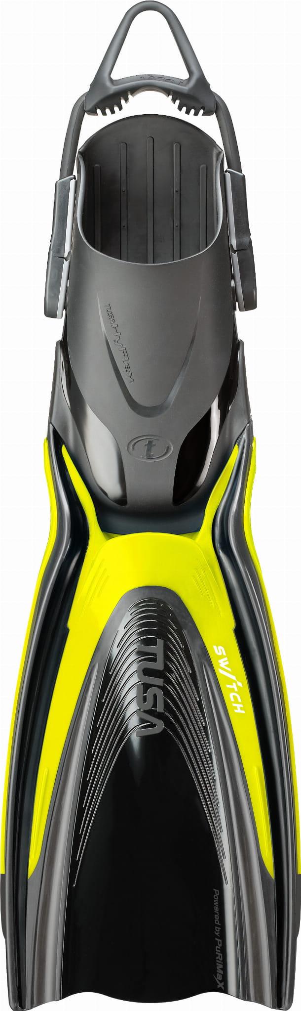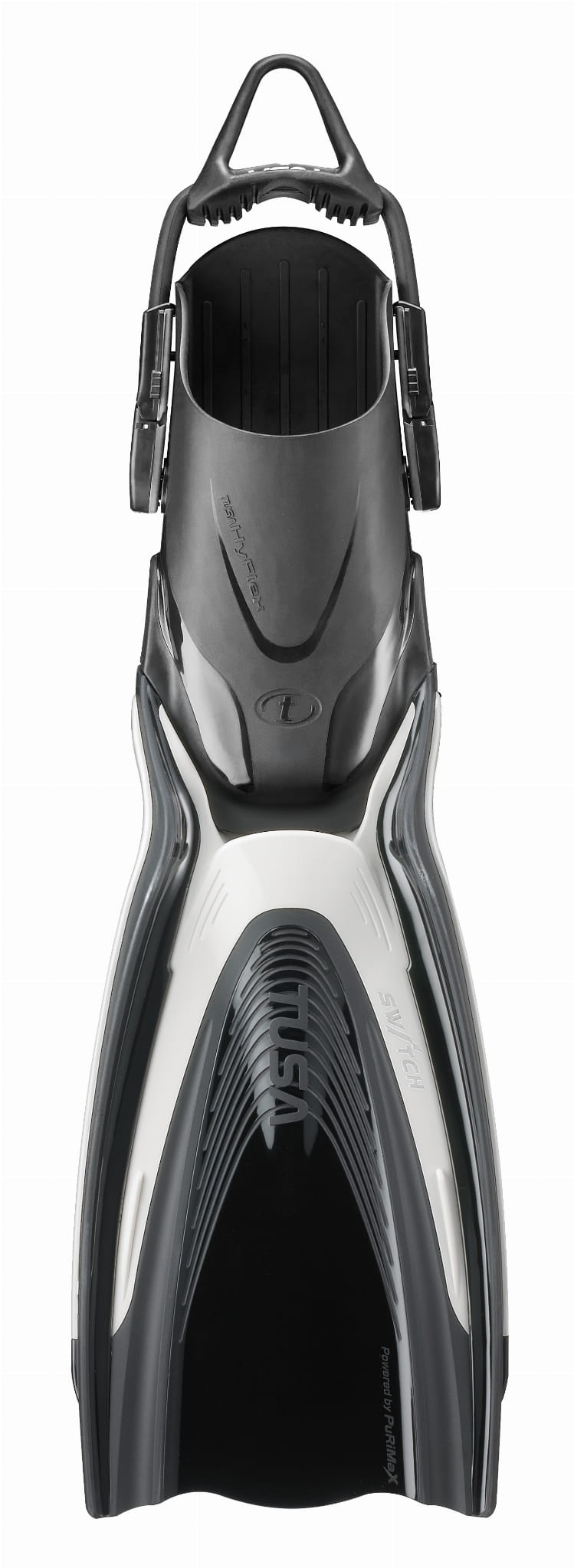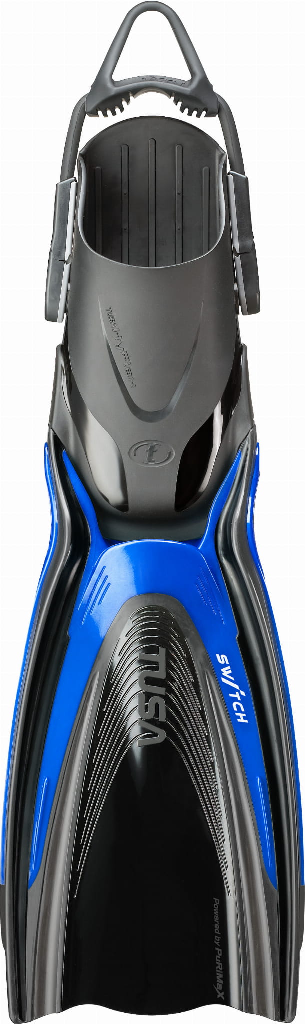 Płetwy TUSA HyFlex Switch to doskonały wybór dla podróżujących nurków i miłośników snorkelingu. Dzięki możliwemu odczepieniu gum bangee oraz kalosza od pióra płetwy, HyFlex Switch są niezwykle wygodne w podróżowaniu (możesz przewozić płetwy w dużo mniejszych torbach!). Zastosowana technologia A.B.D (Angled Blade Design) oferuje znakomite odbicie przy minimalnym użyciu siły. Generator zawirowań - system sześciu poprzecznych wypustek, umieszczonych za szczeliną pióra redukuje opór, zapewniając łagodniejszy i bardziej efektywny cykl pracy płetwy. Pióro płetwy wykonane jest z najwyższej jakości materiału poliuretanowego, który zapewnia szybszą reakcję na ruchy stopy, niż płetwy wykonane z gumy czy plastiku. Niezwykle wytrzymały elastyczny pasek, zdecydowanie ułatwiający zakładanie i zdejmowanie płetwy. System szybkiego dopasowania zapewnia 5 pozycji zamocowania. Płetwy HyFlex Switch z 20 stopniowym kątem wygięcia ostrza nie dość, że są bardzo lekkie to dodatkowo generują znakomitą szybkość przy odepchnięciu.