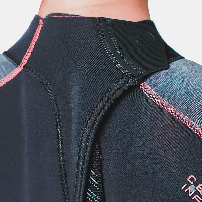 - długi (54 cm) zatrzaskowy suwak na plecach z zabezpieczeniami zapobiegającymi wdarciu się wody do skafandra