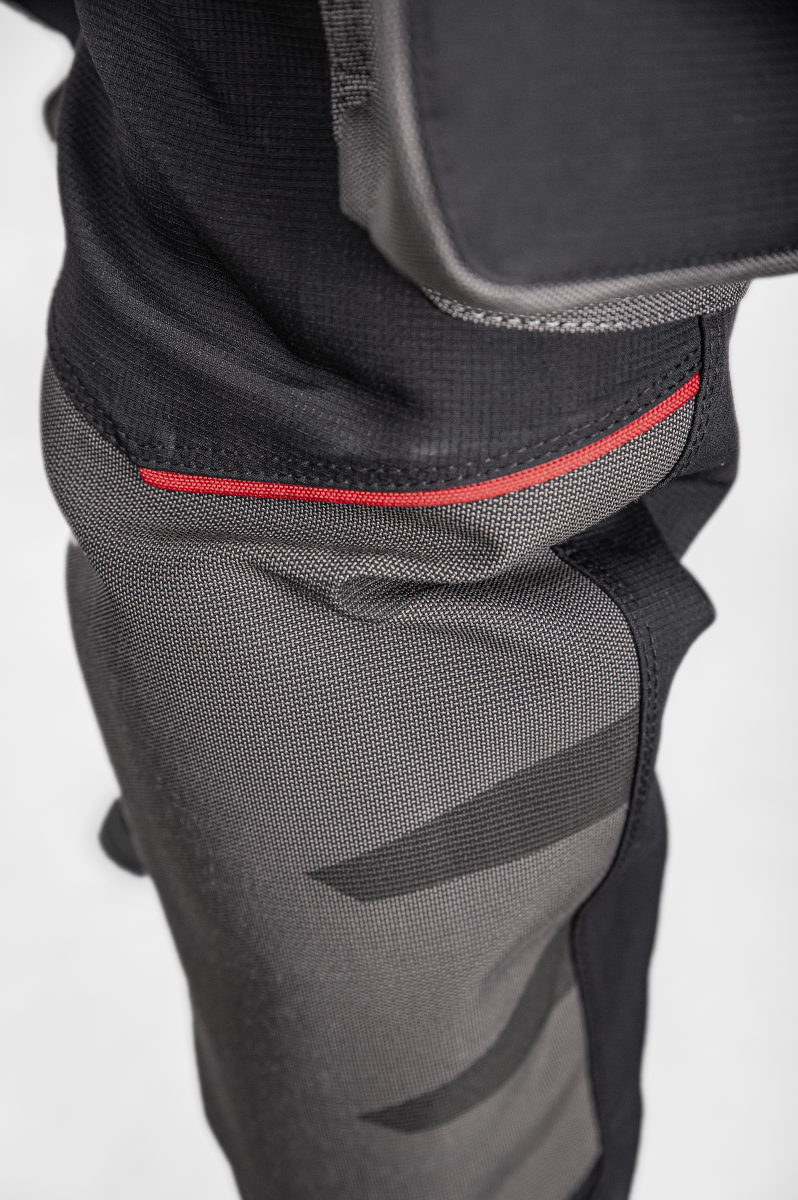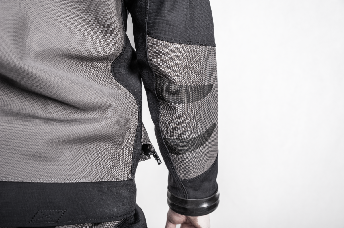 - Specyfika tkaniny wierzchniej - 60,5% nylon, 20% poliester, 12% Kevlar®, 7,5% PU - odporny na ścieranie, rozdarcia, przecięcia, przyczepność, trwałość, rozciągliwość